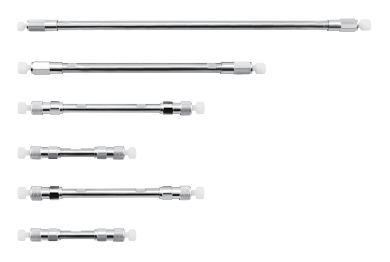 5、色譜柱材質(zhì):評(píng)估分析物與色譜柱材質(zhì)的兼容性,避免使用過程中發(fā)生不必要的化學(xué)反應(yīng)或吸附現(xiàn)象。常見的色譜柱材質(zhì)有硅膠基質(zhì)、氧化鋁基質(zhì)和聚合物基質(zhì)等,不同材質(zhì)的pH適用范圍、化學(xué)穩(wěn)定性和機(jī)械強(qiáng)度等有所不同。